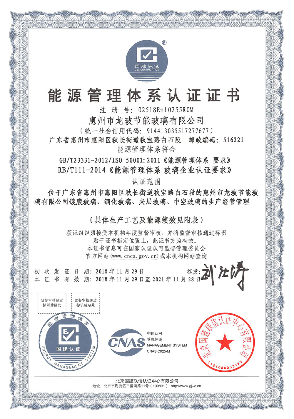 能源管理体系认证证书