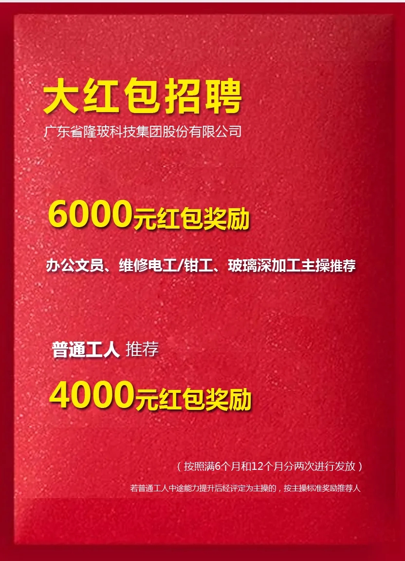 作为一家近年来以智能化突围的玻璃深加工新秀,人才吸纳与储备成为广东隆玻科技集团近年来的重要部署,牛年为行业提供如下就业岗位: