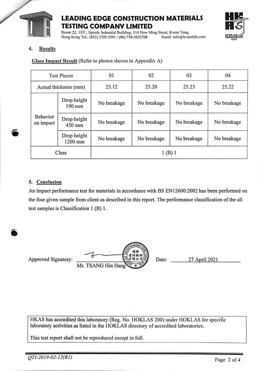 12+1.52+12夹层撞击测试报告