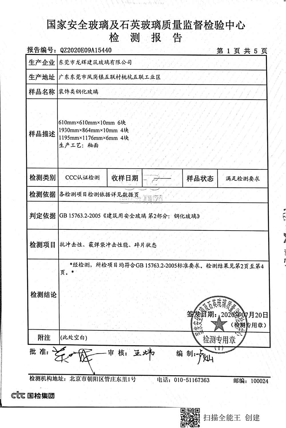 东莞隆玻3c装饰类钢化玻璃检测报告
