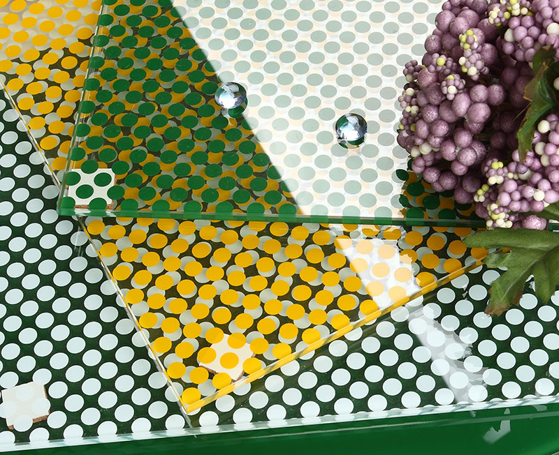 彩釉玻璃色彩绚丽、丰富,能调配出PANTONG色标上的大部分颜色;除可制成单色、仿花岗石图案等彩釉玻璃以外,还可设计成圆点、方格、线条等有序图案来加强建筑物装饰效果。主要用途体现在: